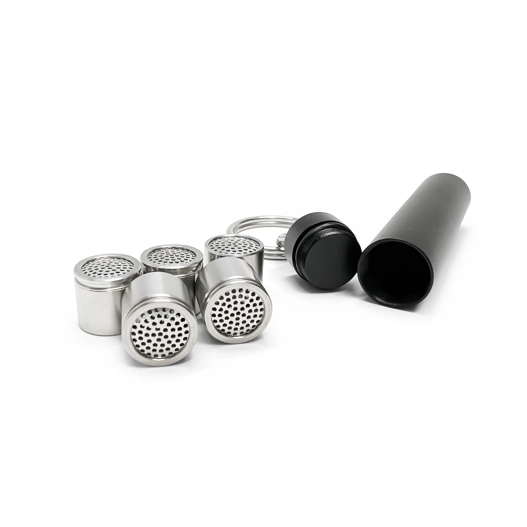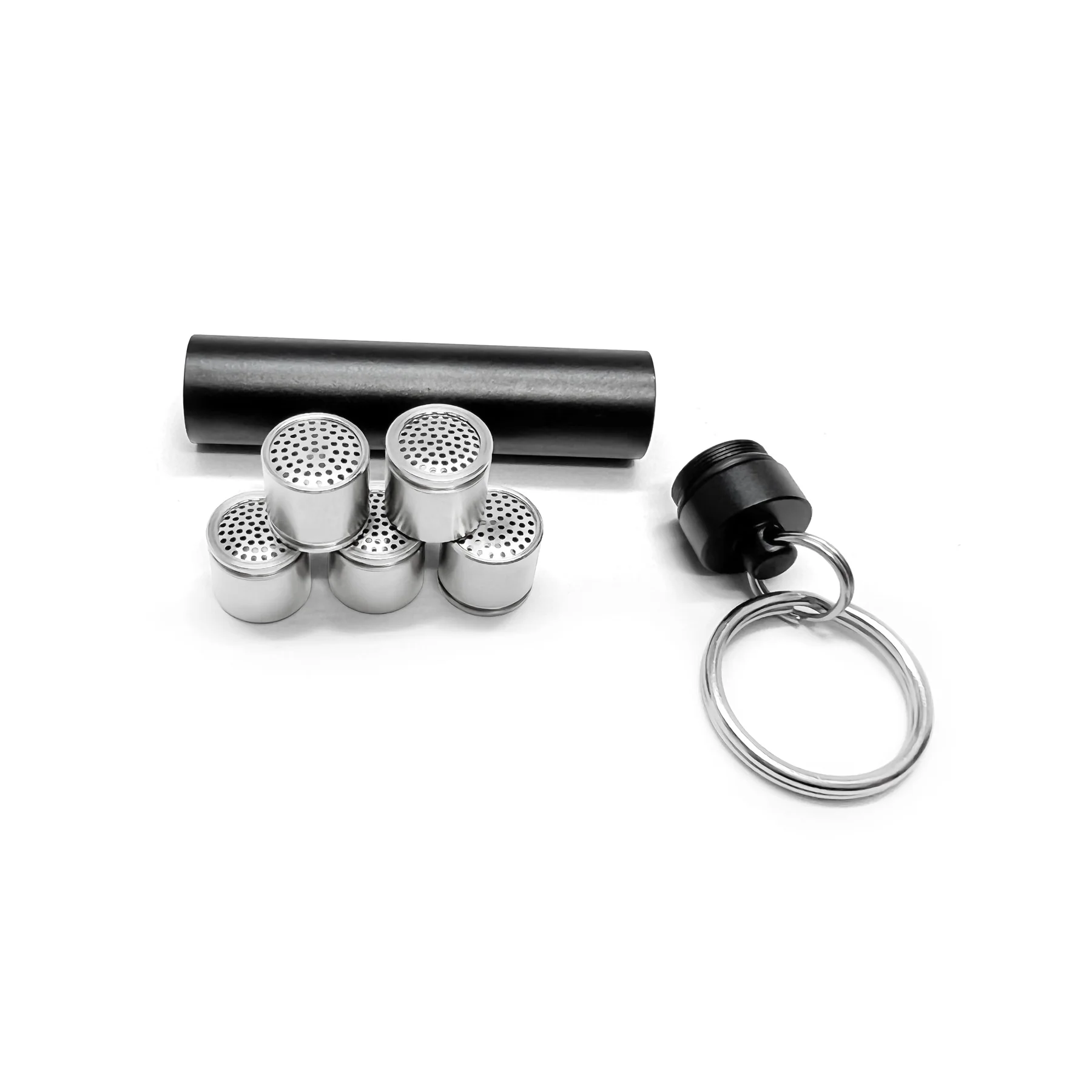 Προγεμίστε τα δοσιμετρικά καψάκια σας, στη συνέχεια αποθηκεύστε τα στο μεταλλικό δοχείο και προσαρμόστε διακριτικά στη θήκη μπρελόκ.